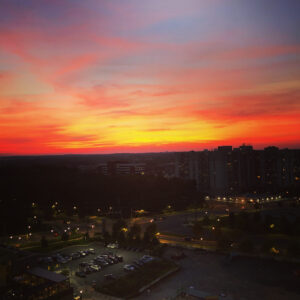 It’s a warm July evening and I walk out onto the 16th floor balcony. The view of the sunset is mesmerizing and I paint a